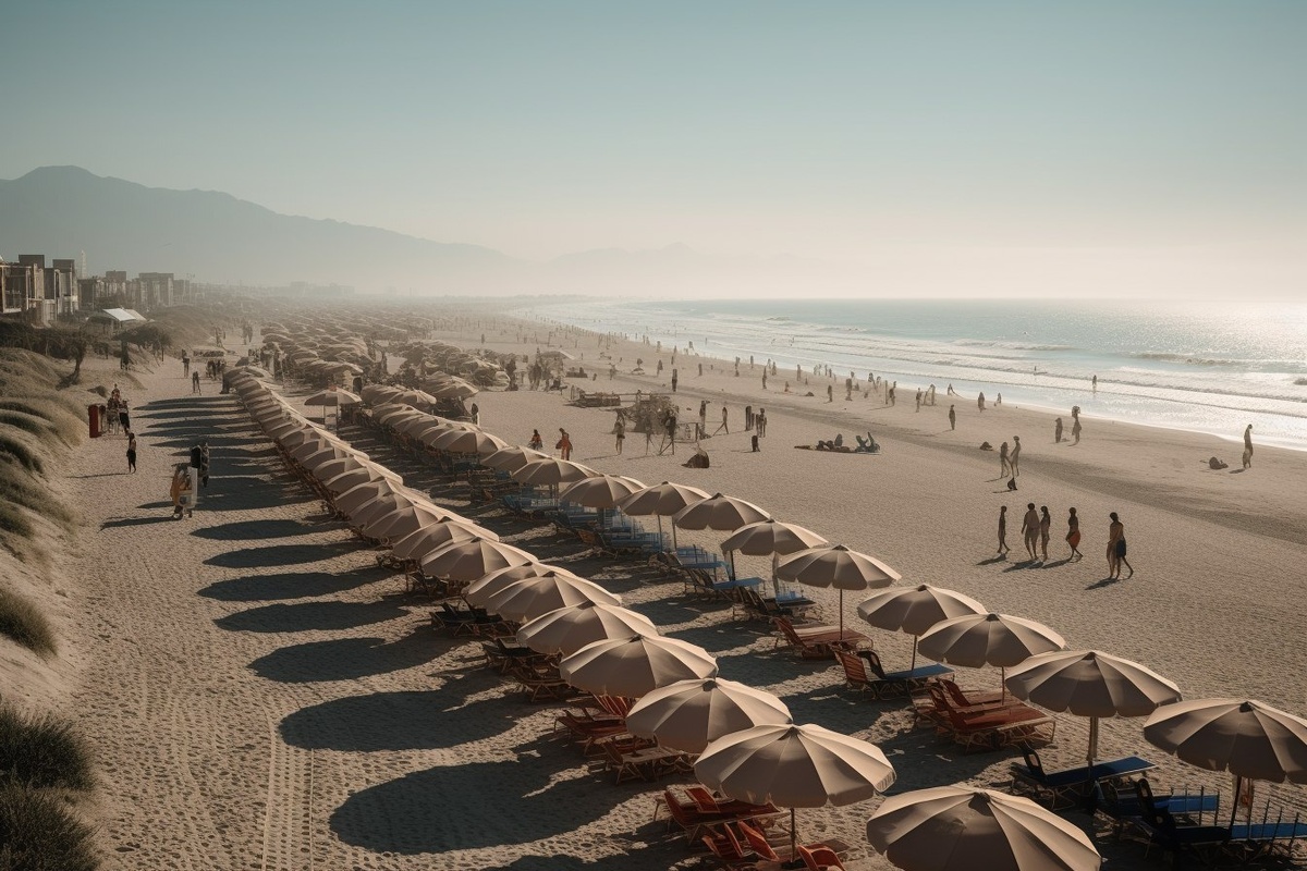 Создано на основе запроса: A photorealistic travel photo of Lido di Camaiore, Italy, showing the wide sandy beach with sunbeds and umbrellas, and the long pier extending into the sea. Tourists walk along the promenade, some riding bikes, others eating at beachfront restaurants. The Apuan Alps rise faintly in the background. Lighting is crisp and neutral, with real-world textures. --- Автоперевод: Фотореалистическая фотография путешествия Лидо ди Камайоре, Италия, показывающая широкий песчаный пляж с солнечными комнатами и зонтиками, а также длинный пирс, простирающийся в море. Красиво выглядит? 🤔 https://dzen.ru/id/65c0c65c86e4f837c27b24d7 #ИИ #AI #нейросеть #midjourney #art