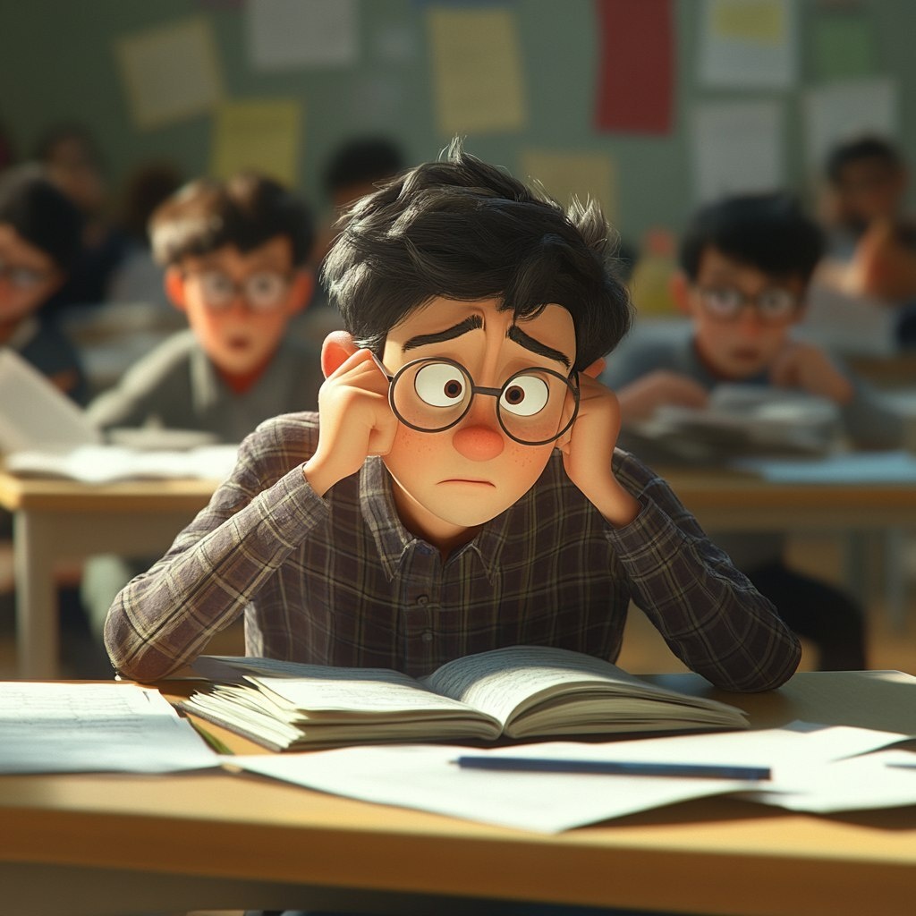 Создано на основе запроса: A noisy student becoming focused and helpful in class, Pixar/Disney style