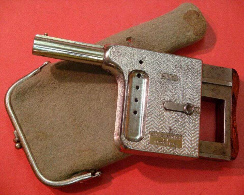 Предприниматели Этьен Мимард и Пьер Блашон в 1892 году разработали карманный пистолет Митральеза (фр. Mitrailleuse de poche – карманный пулемет). В XIX веке митральезой называли многоствольное скорострельное оружие. Видимо, поэтому предприниматели решили назвать свой пистолет Митральезой, чтобы рекламировать его как компактное и скорострельное оружие. Как пишет «Российский монитор», Митральеза не была автоматическим оружием, как сперва может показаться. При сжатии рычага задняя часть рамки толкала затвор, который вытаскивал патрон из магазина и вставлял его в патронник, после этого ударник бил по капсюлю патрона и происходил выстрел. Сверху рамки над магазином размещалась подвижная пластина. Когда сжатие рычага ослабевало, затвор возвращался назад, а гильза выбрасывалась вверх в окно на раме, что находилось под пластиной и открывалось во время стрельбы. Для пистолета использовались патроны центрального воспламенения калибра 8 мм.