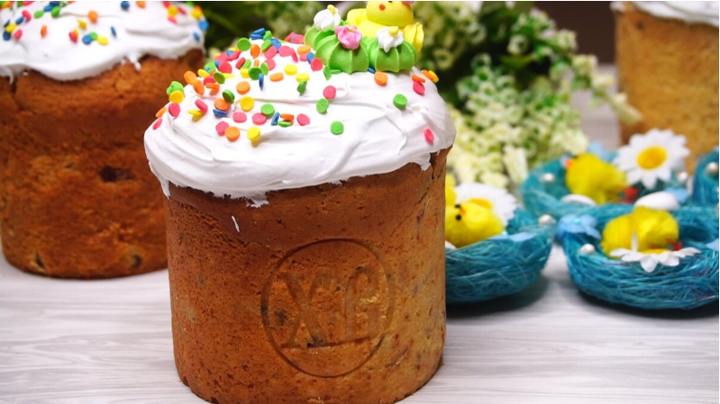 Кулич за 50 минут без дрожжей, Нежный, в меру влажный и получается у ВСЕХ с первого раза. Это самый быстрый вариант кулича. Но в результате получается очень нежным, в меру влажным и очень вкусным. И приготовлю белковую глазурь. Рецепт: Для кулича: (на 2 формы размером 10*8см) Мука -250 гр. Крахмал -2 ст. л. Разрыхлитель -1 ч. л. и сода -1/3 ч. л. Соль -1/3 ч. л. Яйцо -1 шт. Сахар -150 гр. Сметана -2 ст. л. Молоко -150 мл. Сливочное масло -100 гр. Ванилин – 1 пачка. Изюм -100 гр. Для глазури Французская меренга: Яичный белок -1 шт. Сахар -60 гр. Сахарная пудра -1 ст. л. СПОСОБ ПРИГОТОВЛЕНИЯ 100 грамм изюма заливаем кипятком и отставляем в сторону. Отмерим 250 грамм муки, добавляем кукурузный крахмал 2 ст. л., добавляем разрыхлитель 1 ч. л. и добавляем 1/3 ч. л. соды, теперь добавляем половину ч. л. соли. Перемешиваем и отставляем в сторонку. В другую миску разбиваем 1 яйцо, добавляем 150 грамм сахара, ванилин 1 пачку и взбиваем до растворения сахара и увеличения в объеме, по времени зан