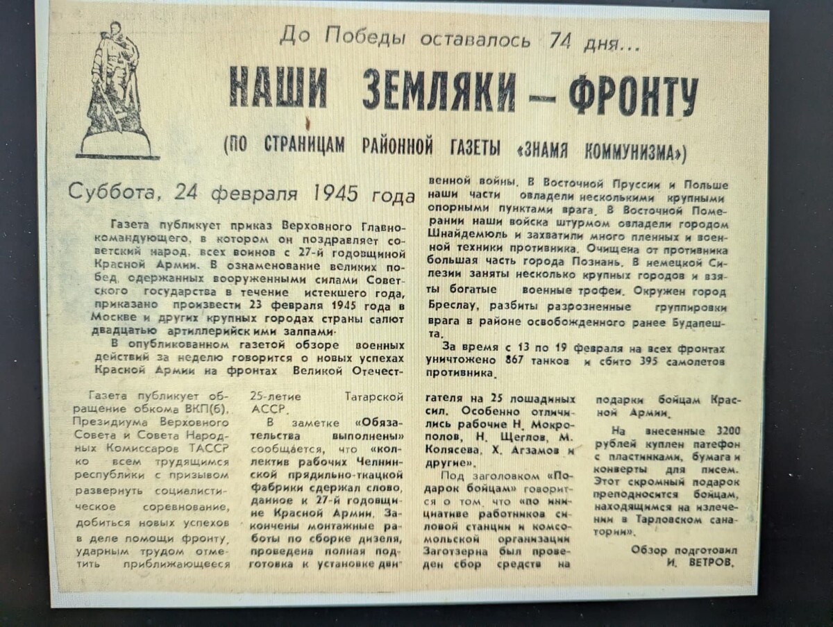 В Татарскую АССР в годы Великой Отечественной войны было эвакуировано более 70 крупнейших промышленных предприятий из западных регионов страны. В кратчайшие сроки они налаживали производство на новом месте – это пример невероятной человеческой стойкости. «В Набережных Челнах разместилось одно из промышленных предприятий, эвакуированное из города Вышний Волочек Калининской области – крупного центра текстильной промышленности, – рассказывает начальник архивного отдела управления делопроизводством исполкома Нэля Хазрятова. – Начиная с 1 декабря 1941 года, оборудование в город доставлялось по железной дороге до станции Сюгинской (сейчас – Можга). Размещали его на выделенных для заводских цехов помещениях, в основном, бывших купеческих складах. А запускали на новой челнинской прядильно-ткацкой фабрике». На базе оборудования вышневолоцкого хлопчатобумажного комбината и прядильно-ткацкой фабрики такие же производства были развернуты в Елабуге и Мамадыше. Там выпускали для фронта марли, бязь,