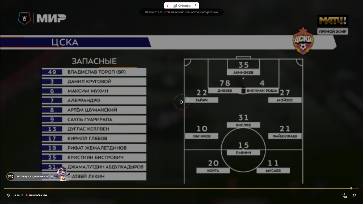 Газон в перерыве почистили от снега, и ЦСКА стал лучше контролировать мяч, правда, особых моментов не создавал. На 65-й минуте вместо Койта и Файзуллаева на поле вышли Глебов и Бистрович. Кирилл должен был добавить скорости, а появление Бистровича могло дать возможность Кисляку выдвигаться ближе к линии атаки.