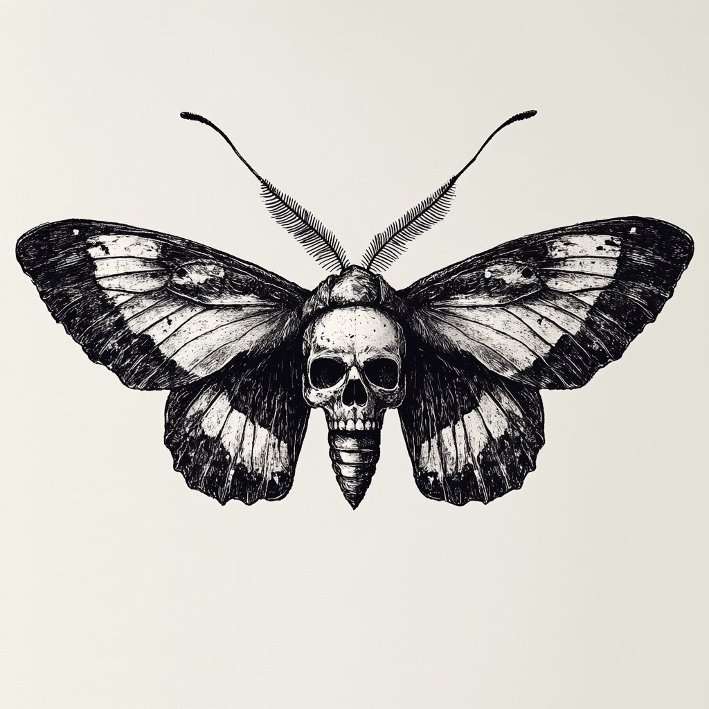 Создано на основе запроса: a moth with a skull design on its wings, black and white