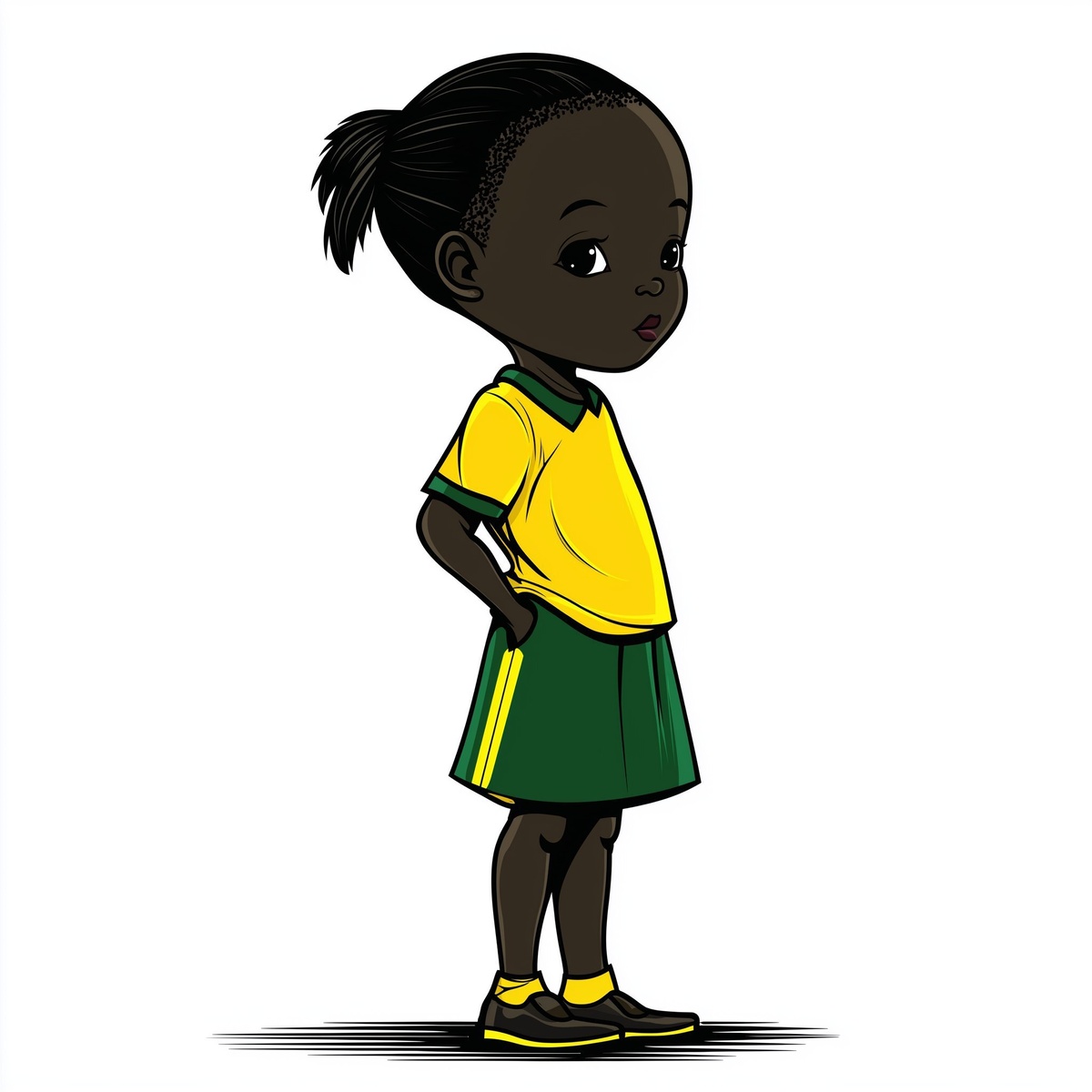 Создано на основе запроса: thine lines hair on the head, trimmed in thin linesrunning. A cartoon of african South Sudan girl standing, with no hair on the head, trimmed hair, wearing yellow and green uniform, thin black line, vector illustration, white background --- Автоперевод: Твои линии волосы на голове, подстриженные в тонких линии. Как тебе вариант? 🤔 https://dzen.ru/id/65c0c65c86e4f837c27b24d7 #ИИ #AI #нейросеть #midjourney #art