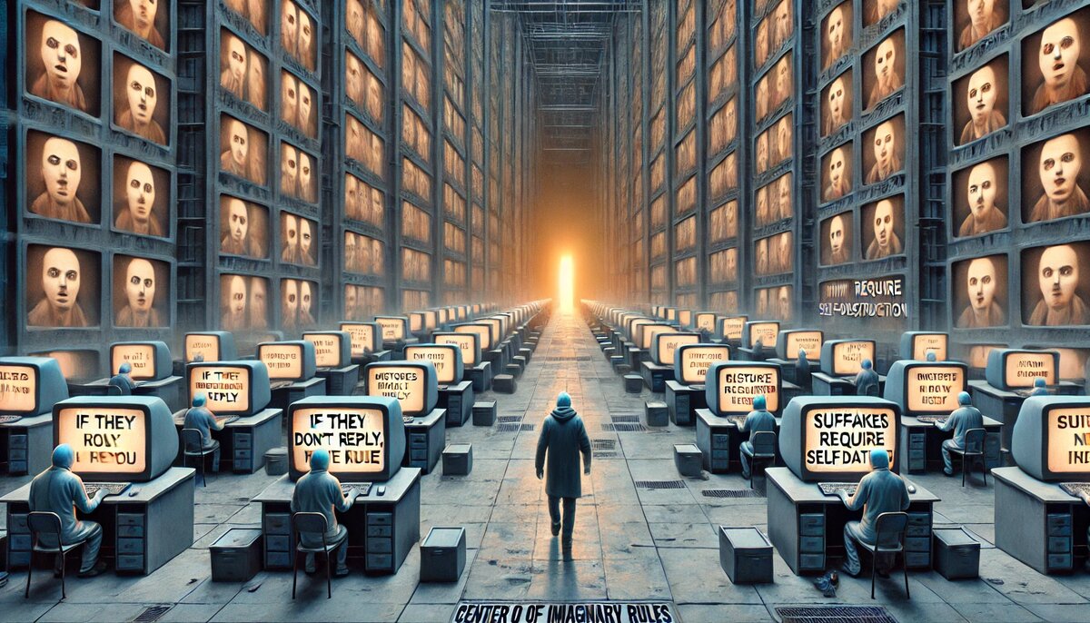 С серыми перегородками, пластиковыми цветами и лёгким запахом отчаяния. Ты идёшь по коридору — мимо сотрудников, лихорадочно печатающих на старых клавиатурах.