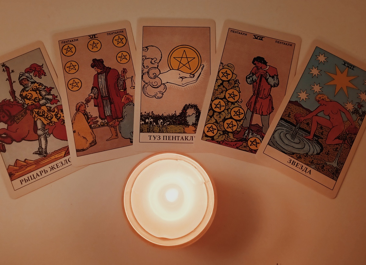 Мои прекрасные! Сегодня я обращаюсь к вам с особым волнением – карты Таро открыли передо мной портал, через который Вселенная шлёт вам послание. Что ждёт вас в ближайшие дни? Какие события закружат вас в своём танце? Я раскинул колоду, и вот что мне поведали арканы: Рыцарь жезлов, Шестёрка пентаклей, Туз пентаклей, Семёрка пентаклей и сияющая Звезда. Это не просто случайный набор символов – это история, сотканная из огня, земли и звёздного света, где каждая карта вплетает свою нить в общий узор вашей судьбы.