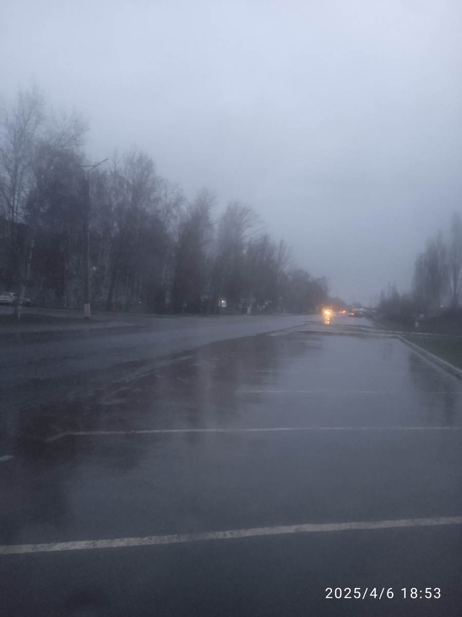 Стоянка былапустая после дождя....