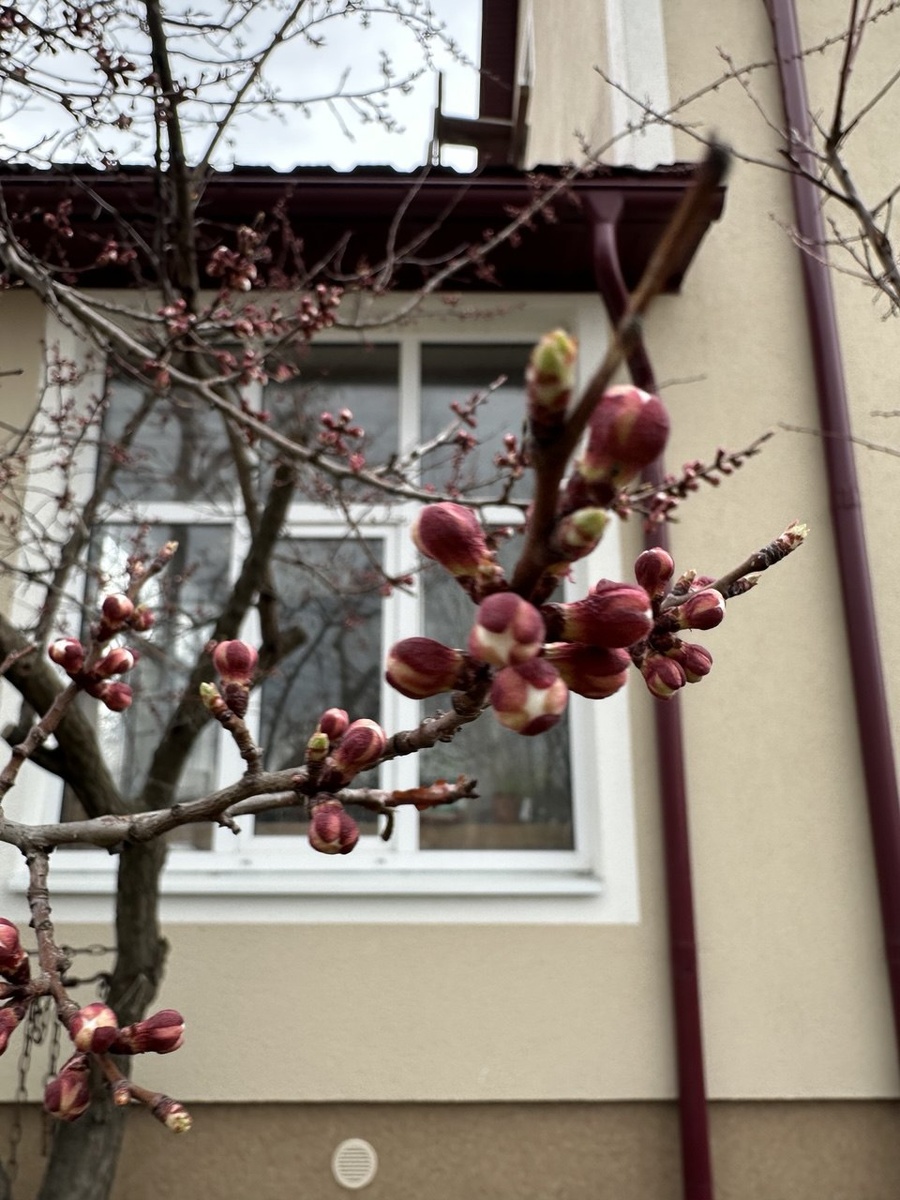 Выходные были теплющие + 18 градусов. Но мы то уже знали, что в воскресенье Москву «завалит» снегом, о чем по радио я потом слышала ежечасно. Вот поэтому мы шептали про себя - только бы абрикосовые бутоны не распустились. Самыми устойчивыми к морозу являются бутоны. Раскрывшиеся цветы чуть менее. А вот завязи - это самая уязвимая стадия. На вечер воскресенья цветы не открылись, понедельник еще один теплый день, а потом недельное похолодание с ночными + 2. Но у нашего метео погрешность в 2, 3 и больше градусов является нормой, поэтому готовимся к худшему варианту. Ну, как, готовимся, настраиваемся типо. А пока, наконец, можно пожарить любимую мойву. Потому что это приемлемо только на улице. В помещении, не смотря на вытяжку, вонь потом стоит неделями. А на свежем воздухе - милое дело. Какая славная низенькая травка. И не верится, что потом коси ее каждую неделю, минимум. Не зря я выносила выгуливаться перцы в теплицу. Похоже, именно там они нагуляли два перчика. Потому как в доме о