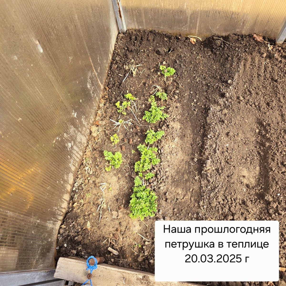 🍅РАСТИМ В ТЕПЛИЦЕ🌡 В прошлом году, мы посадили, вырастили и использовали для приготовления различных блюд прекрасную зелёную петрушку. Поздней осенью срезали остатки зелени, которую заморозили, а сами корни петрушки решили не выкапывать, в надежде, что ранней весной она снова прорастёт и опять будет радовать нас своей зеленью. Так и произошло! Как только солнышко стало подольше задерживаться на небосклоне, наша петрушка-второгодка пустилась в рост и буквально за 2 недели достигла существенного прогресса: от первых листочков, до вполне товарных веточек. От нас потребовалось рыхление почвы и регулярный полив тёплой водой. Посеянная напротив редиска также дала первые всходы с двумя листочками, а также начинает прорастать укроп