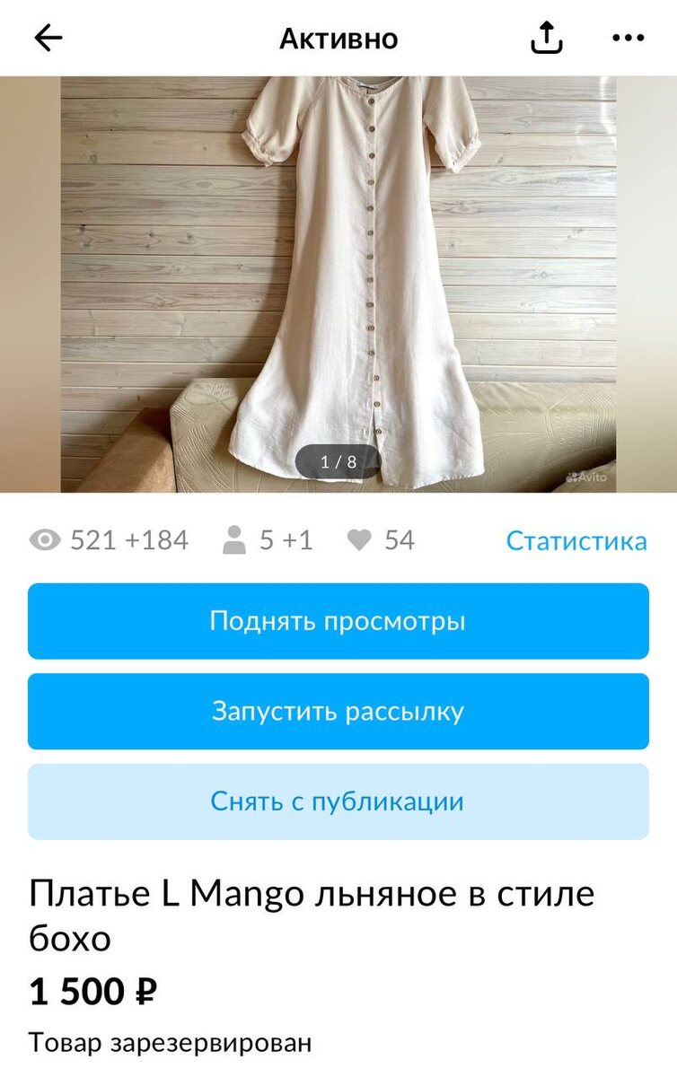Какой-то безумный спрос на платье. Посмотрите, сколько просмотров за вчера и сегодняшнее утро. Одна девушка даже предложила выкупить за цену выше моей. Но оно уже в доставке, к сожалению. Иногда вещи «выстреливают» непредсказуемо. А иногда нужно проанализировать, что именно зашло. В данном случае — свободный крой, натуральные ткани, размер L (большие размеры лучше покупают) и демократичная цена👌