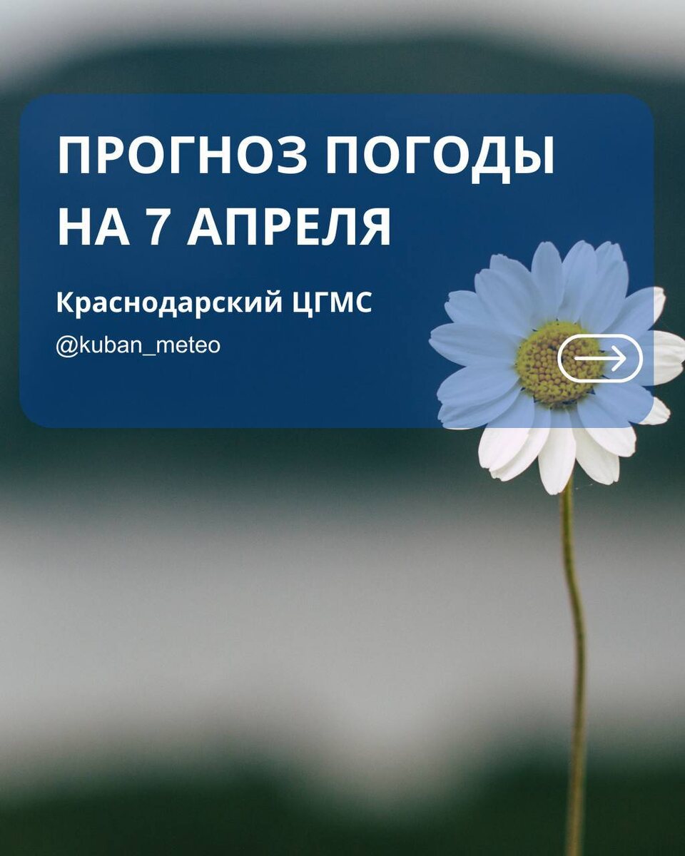 Специалисты Краснодарского ЦГМС подготовили прогноз погоды на 7 апреля👇🏼