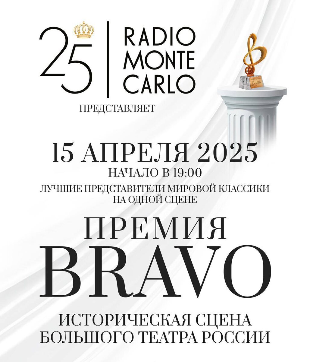 Мы ещё не успели придти в себя от фантастического концерта в Кремле, а тут случилась новая феерия - Мы стали номинантами международной музыкальной премии «BraVo»! И хотя, итоги ещё впереди, для нас это уже серьёзная победа. Ведь 15 апреля мы выступим на сцене Большого театра на V церемонии награждения лауреатов. Счастливы быть частью такого важного культурного события!♥️