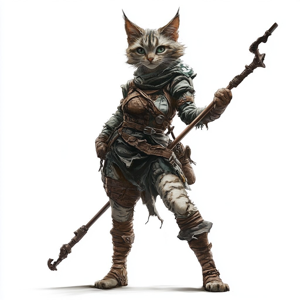 Создано на основе запроса: Fantasy concept illustration, Female, Humanoid cat, Tabaxi, Ragdoll cat type fur, Shy, Leather armour, Battle staff in hands, Octopath traveler style, White background, High quality, Exaggerated fighting pose --- Автоперевод: Фэнтезийная концепция иллюстрация, женская, гуманоидная кошка, табакси, тряпкий кот мех, застенчивая, кожаная броня, боевой персонал в руках, стиль осьминога, белый фон, высокое качество, преувеличенная боевая поза Красиво получилось? 🤔 https://dzen.ru/id/65c0c65c86e4f837c27b24d7 #ИИ #AI #нейросеть #midjourney #art