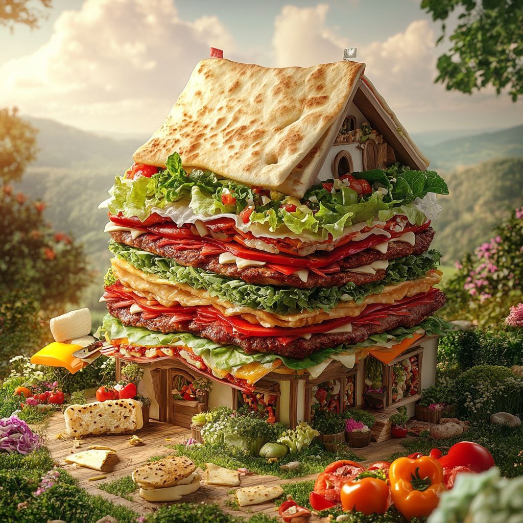 В предверии акции, которая будет проходит у нас завтра, вот такой сказочный пост. 🤩 В мире шаурмы нет предела фантазии! 🙏🍴 Посмотрите на этот сказочный домик, построенный из самых вкусных ингредиентов: сочного мяса, хрустящих овощей и ароматного лаваша! ☀️ Невероятно аппетитный шедевр! #шаурма, #домик, #сказка, #вкусно, #еда, #фантазия