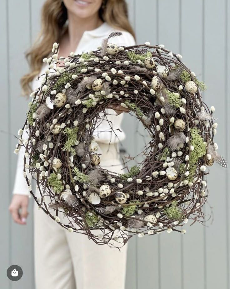 Пасхальный венок — символ праздника Пасхи, олицетворяющий возрождение, жизнь и обновление. Венок служит прекрасным украшением для дома (используют для дверей, стен, окон и т.д.), придавая весеннее и праздничное настроение в период Пасхи. Можно использовать готовую основу для венка (из лозы или проволоки) или сделать её самостоятельно, скрутив тонкие ветки или проволоку в круг. Внешнюю часть венка можно украсить цветами, зеленью и яйцами, расположив их вокруг формы яйца. Также часто добавляют ленты, чтобы дополнить украшение. Венок может быть выполнен как в ярких весенних цветах, так и в пастельных оттенках. Это придает ему легкость и праздничный вид. Цветы и зелень добавляют ощущение весеннего обновления природы, радости и благополучия. Пасхальный венок в виде яйца — это не только красивое украшение, но и глубокий символ, который подчеркивает важные моменты праздника Пасхи. Дети будут рады помочь в оформлении такого венка. Хвостик кролика можно сделать из помпона, ватного шар