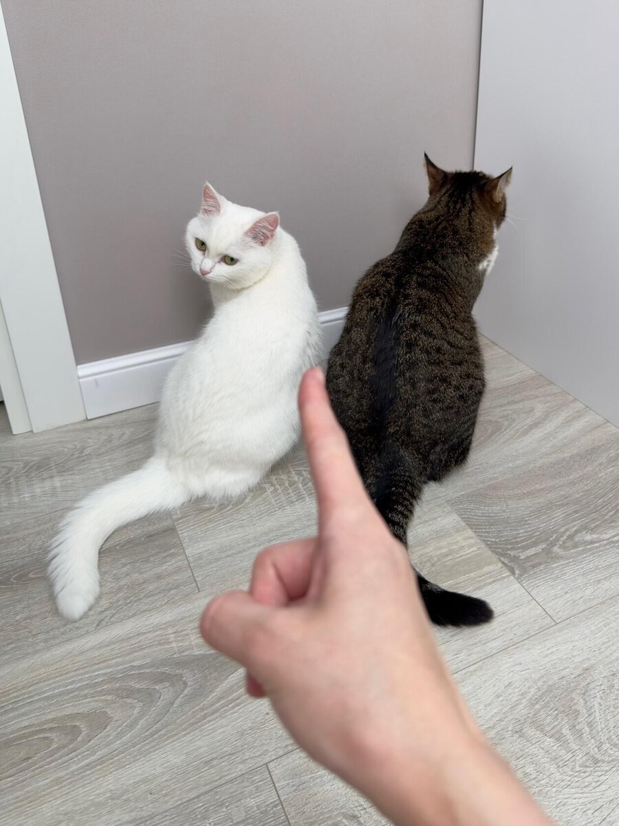 Например мои кошки хорошо знают слово «нет», но его нужно говорить строго, используя интонацию. Когда котик полез воровать корм и вы его в это время застукали, попробуйте сказать строго «НЕТ». Можно использовать и другие слова-маркеты, например «да», «можно». Когда Мята хочет доесть остатки корма Аляски, но знает что нельзя, я могу ей это разрешить словом «можно» с одобрительной интонацией.