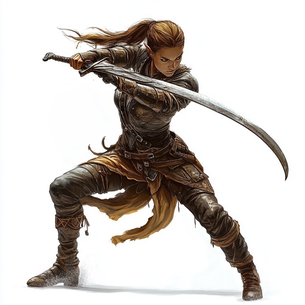 Создано на основе запроса: Fantasy concept illustration, Female, Elf, Fighter, Discipline, Serious, Leather helmet, Leather armour, Elven two-handed curved sword, Hair in a ponytail dark brown, Octopath traveler style, White background, High quality, Exaggerated fighting pose --- Автоперевод: Фэнтезийная концепция иллюстрация, женщина, эльф, боец, дисциплина, серьезный, кожаный шлем, кожаная броня, эльфийский изогнутый меч, волосы в хвостике темно-коричневый, стиль осьминога, белый фон, высококачественная, преувеличенная боевая поза Как тебе иллюстрация? 🤔 https://dzen.ru/id/65c0c65c86e4f837c27b24d7 #ИИ #AI #нейросеть #midjourney #art