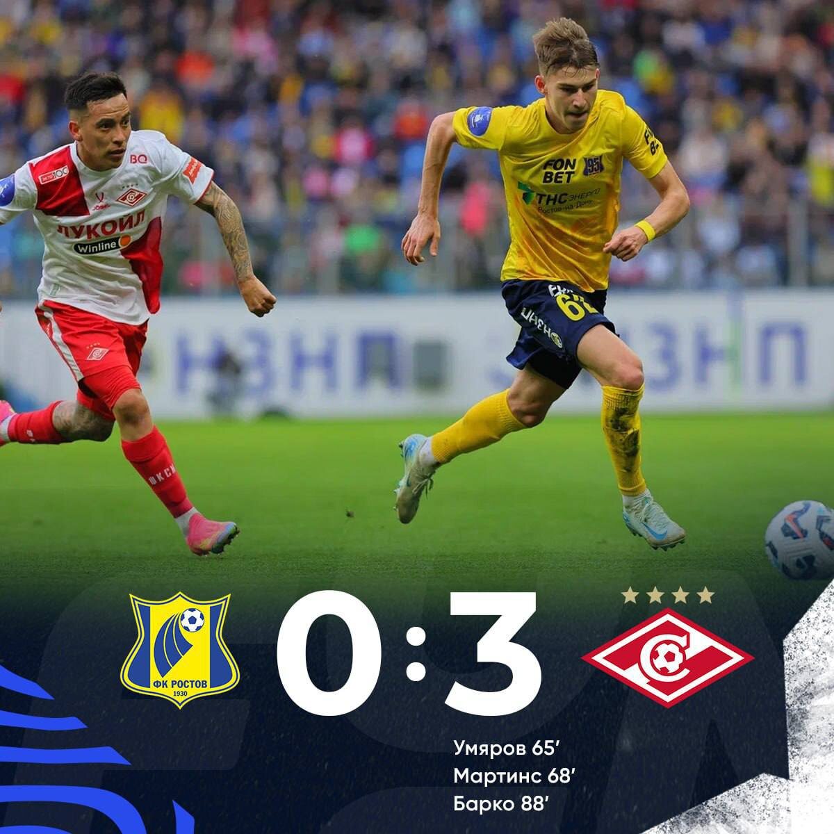 ⚽️ Спартак разгромил Ростов на родном для наших футболистов поле 3 : 0. И поддержка болельщиков не помогла!