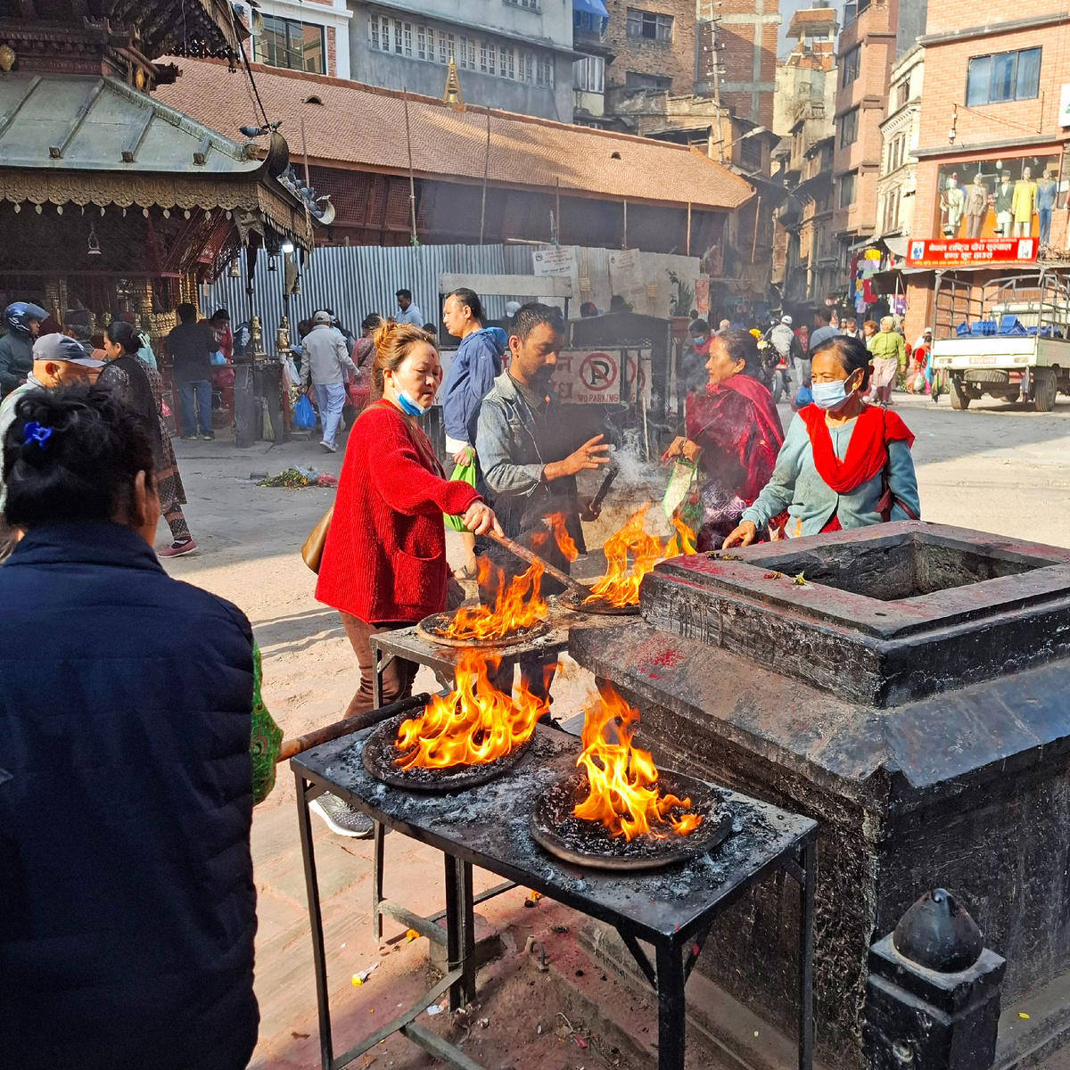 Каждое утро, начиная с 5.00-6.00, непальцы устремляются в храмы - задабривать богов, раскладывают дары у уличных алтарей и даже входов в подворотни. Верят!
