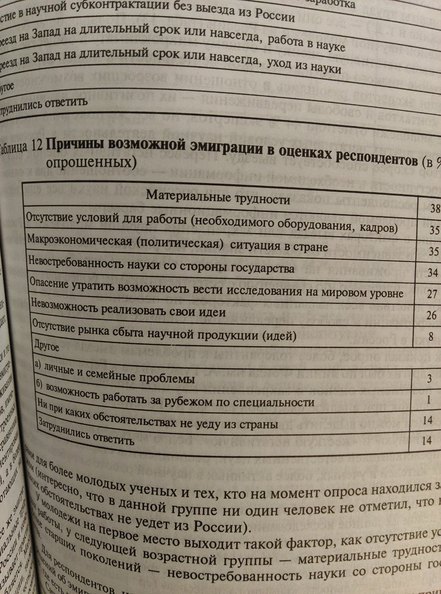 Авторы: А.Ю. Чепуренко, Ф.Э. Шереги, О.Р. Шувалова, Т.Б. Обыденнова. Журнал Мир России, ВШЭ, 2005г. (Краткий перессказ с выдержками из статьи.) Как складывется в условиях радикальных перемен карьера элитных научных кадров России? Какова мотивация для продолжения исследовательской работы или перехода к иной деятельности, выезда для работы или на постояннное место жительства за рубеж? Как сами представители российскй нучной элиты отностся к "утечке мозгов", какие возможности для сохранения и воспроизводства человеческого потенциала отечественной науки они видят? Эти и другие близкие вопросы рассматриваются в статье, написанной по материалам прикладного проекта, в ходе которого были исследованы профессиональные и жизненные стратегии бывших российских степендиатов немецкого Фонда им. Гумбольдта. Благодаря тому, что значительную роль в иституциональной эволюции российской науки с начала 1990-х годов играют зарубежные некоммерческие фонды, сформировалась новая культура менеджмета наук