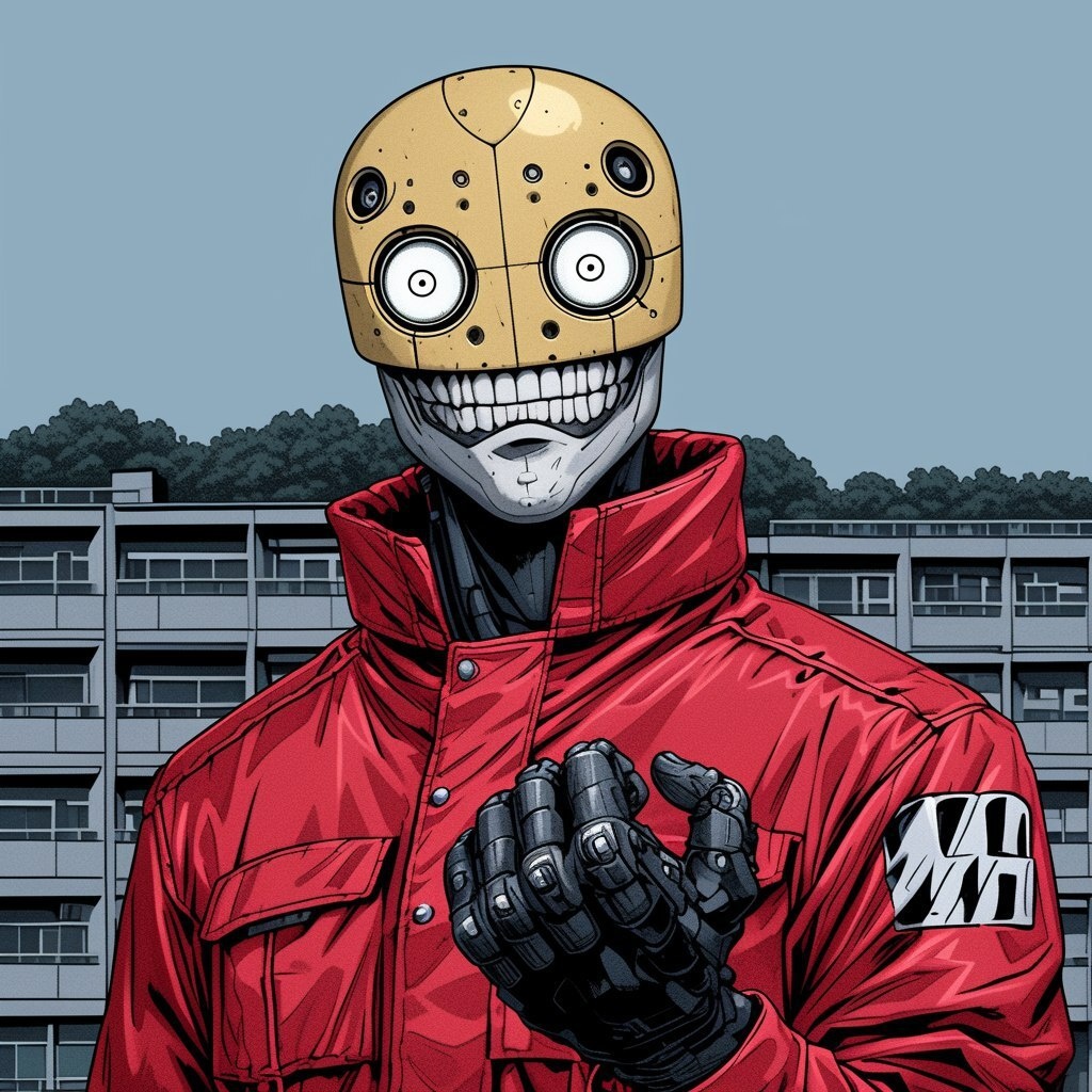 Создано на основе запроса: evil robot in Katsuhiro Otomo - Akira style, slide profile photo