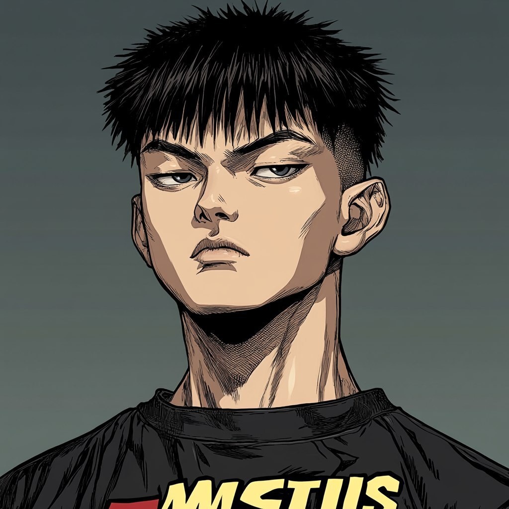 Создано на основе запроса: misfits profile of a man who is wearing a t shirt with the misftis logo, anime style