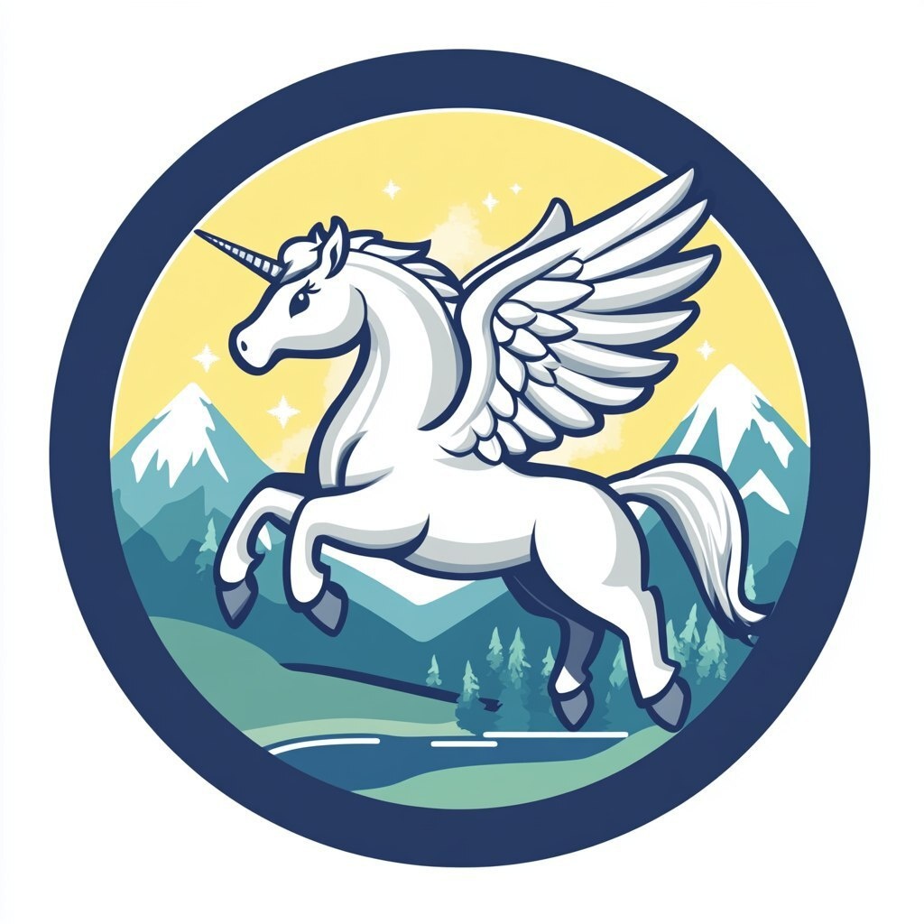 Создано на основе запроса: animated White Pegasus cartoon logo camp badge