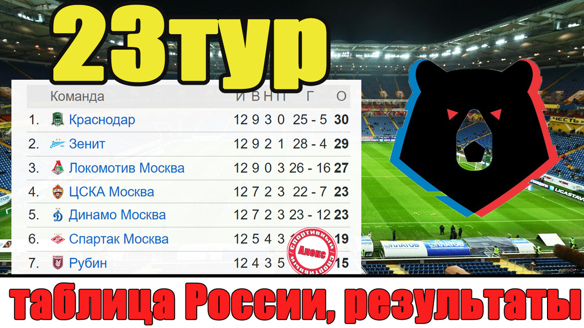 Привет. Вы на канале «Алекс Спортивный». Каждую неделю мы делаем обзор результатов чемпионата России по футболу. Состоялся 23 тур. Рассказываю об его итогах и статистике, а в конце узнаем, как дела в ФНЛ. 4 апреля первыми сыграли Нижний Новгород и Оренбург. Последний клуб таблицы выдал хороший матч и закономерно выиграл 2:1. А вот Нижний Новгород четвёртый тур без побед. Друзья, обсуждается вопрос показа видеоповторов на табло стадионах. Как вы относитесь к этой инициативе? В субботу, 5 апреля, состоялось 4 матча: Крылья Советов принимали Рубин. Иван Сергеев отличился за самарцев во втором туре кряду, но гостей от поражения спас в конце Вада с пенальти (1:1). Напомню, в первом круге победу на выезде одержали Крылья со счетом 2:0. Факел сыграл с Ахматом. Команды практически не создали угроз воротам друг друга. О чем говорить, если было всего 4 удара в створ. Итоговый счет 0:0. Ахмат 4-й тур кряду заканчивает с ничейным счетом. Локомотив в ключевой игре принимал Зенит. После пропущенного