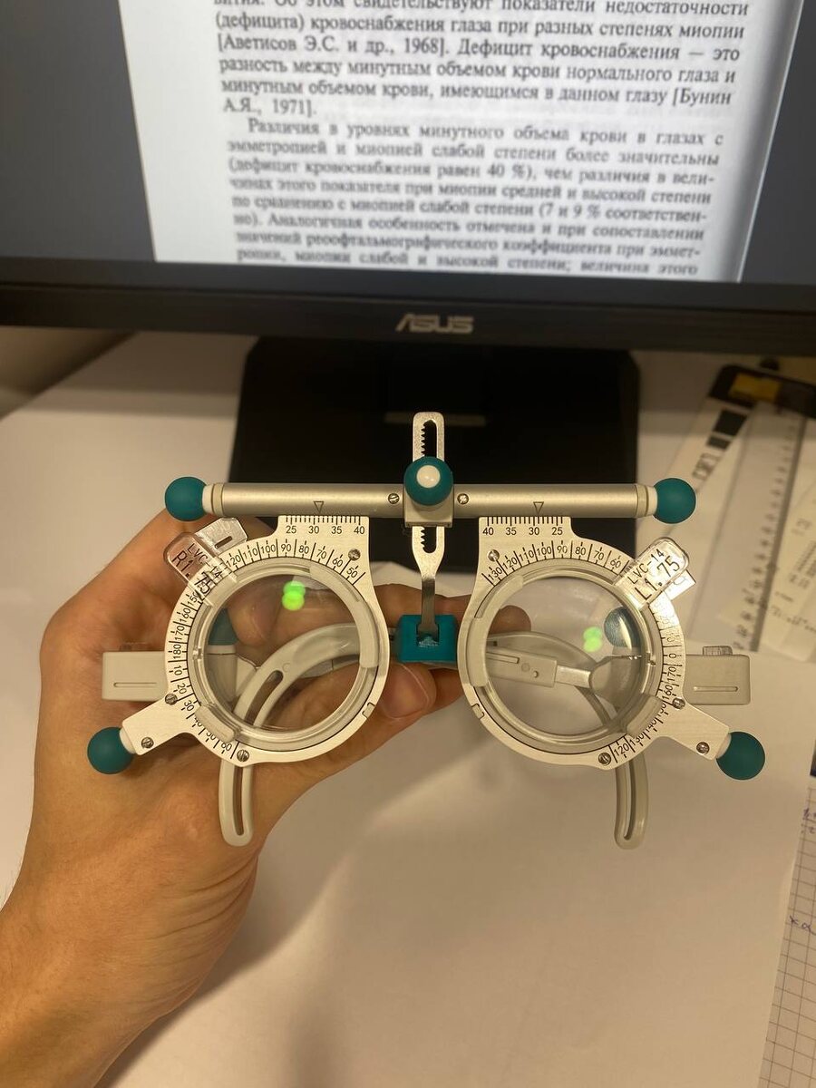 💥Прогрессив на время циклоплегии? Звучит необычно, но да! Мне повезло, что есть пробники прогрессивных линз и я смог испытать необычные ощущения. Делюсь опытом эксплутациии. А теперь циклоплегический миникейс: Пациент, 23 года Работает за ПК и смартфоном по 6-12 часов в день Активных жалоб нет Rp: OD -0.5/-0.5 ax 90 – 1.5 OS -0.5/-0.5 ax 45 – 1.5 ADD вариабельна, зависит от времени действия циклоплегии Характер зрения – бинокулярный Подобраны прогрессивные и офисно-прогрессивные очки с аддидацией 2.5/2.0/1.5/1.0 📣Обратная связь Прогрессивные очки: Ощущения в прогрессивных очках с аддидацией 2.5 точно как в аквариуме, а каждый миллиметр дает тебе определенную четкость и только на определенной дистанции. Чуть вверх-вниз, фокус моментально теряется. Вынужденное положение головы терпеть невыносимо, слишком сильно приходится задирать голову на монитор, который стоит на расстоянии 70 см. Вблизи абсолютная «каша» зрительного образа. Будто у тебя примитивная камера без фокуса. Перифери
