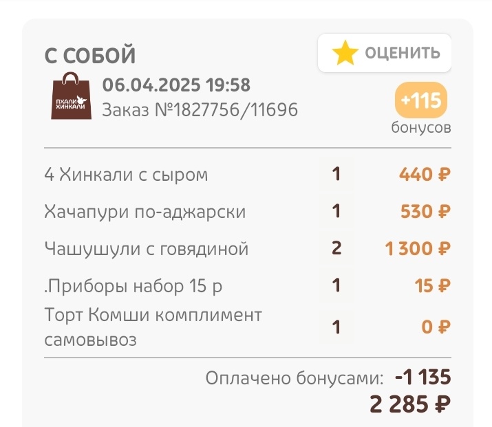 Некоторое время назад я получила 1000 баллов за заполнение анкеты в приложении ресторана Пхали хинкали. Писала тут: