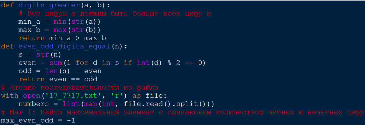 всех цифр второго элемента в паре (первый элемент – крайний левый элемент в паре), а сумма текущей пары не больше максимального элемента последовательности, запись которого содержит одинаковое количество четных и нечетных цифр. В ответе запишите два числа: сначала количество найденных пар, затем максимальную сумму элементов этих пар. В данной задаче под парой подразумевается два идущих подряд элемента последовательности. Не забывайте подписываться на канал! Таким образом вы помогаете выходу новых разборов! Решение: Если вам понравился разбор - можете поддержать автора с помощью функции "доната". Спасибо А также ставьте лайк, пишите комментарии. ЖМИ НА ССЫЛКУ СНИЗУ ДЛЯ НАВИГАЦИИ ПО РЕШЕНИЯМ Тут все разборы собраны воедино