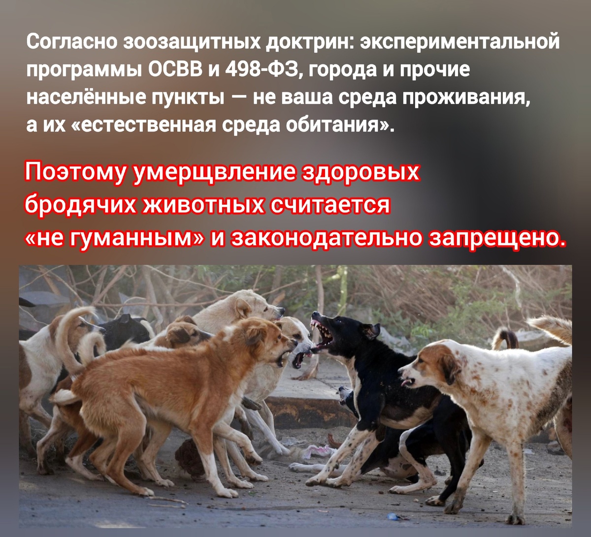 Зоозащитники насаждают нашему обществу, будто бродячие собаки — это «нормально», «мило» и так далее, а все вокруг якобы обязаны угождать и зоозащитникам, и их бродячим собакам. Мол, люди просто обязаны «гуманно относиться ко всем бродячим животным»...