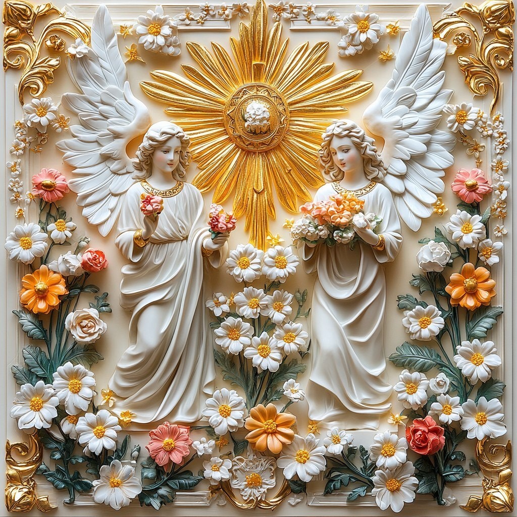Создано на основе запроса: scene from the bible golden icon with flowers, white, heavenly, photo