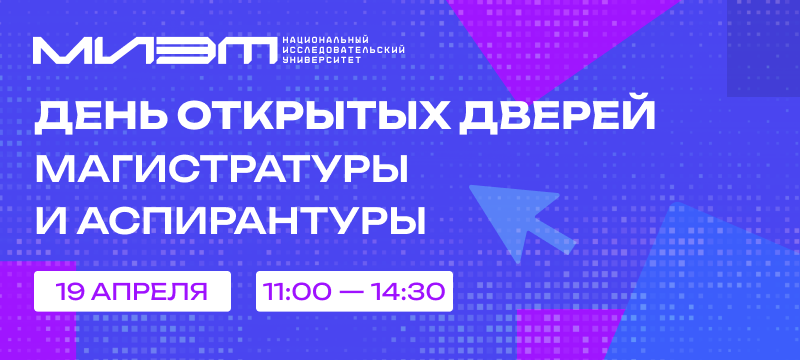 программ и уточнить критерии оценки творческих работ, познакомиться с потенциальным будущим научным руководителем, узнать о направлениях и тематике научных исследований от аспирантов университета. В этом году в НИУ МИЭТ предусмотрено более 400 бюджетных мест на программы магистратуры и более 50 бюджетных мест на программы подготовки научных и научно-педагогических кадров в аспирантуре. Начало мероприятия в 11:00, проход гостей в университет с 10:30. Представители приемной комиссии расскажут о правилах приема в магистратуру и о целевом обучении. Подробное расписание презентаций магистерских программ появится позже. Поговорим об особенностях поступления в аспирантуру, направлениях