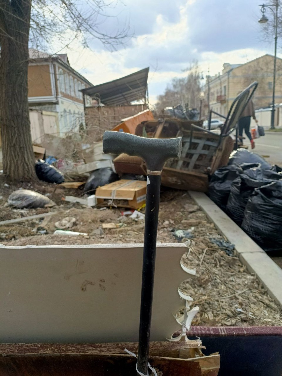 Контрастный Оренбург. Пенсионерка, проживающая на переулке Хлебном, с помощью бадика огородила свой участок от городского мусора.