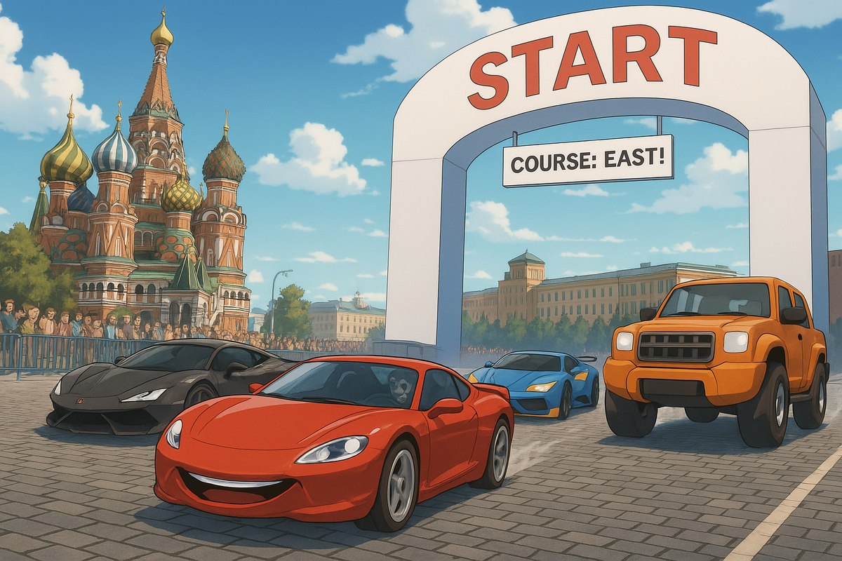 Глава 1. Москва: Гонка по Красной площади. После захватывающей гонки по Турции участники прибыли в Россию. На этот раз старт второго этапа проходил в самом сердце страны — в Москве! Город гудел от волнения. Туристы, местные жители, съёмочные группы — все собрались у стен Кремля. Прямо перед Красной площадью установили стартовую арку. — Это будет незабываемо! — воскликнул Спиди, осматривая собор Василия Блаженного. Сигнал — и машины срываются с места! Электра ловко уходит влево, обходя Турбо, а Биг Ролл сотрясает мостовую под колёсами. Гонка проходит по набережной Москвы-реки, мимо башен Кремля и современных небоскрёбов Сити. Вихрь решает срезать путь через Третьяковскую галерею, но вылетает прямо в стаю голубей и теряет скорость. Спиди же мчится мимо Храма Христа Спасителя, делает вираж у Большого театра и снова выходит к Красной площади. — Держись, Турбо! — кричит он и с ревом пролетает под аркой с табличкой: «Маршрут: Восток!» Глава 2. Золотое кольцо: Дорога сквозь века. Из