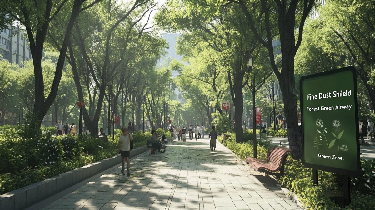Создано на основе запроса: 4K ultra-realistic photo of Korean citizens walking through an urban forest built within the city. Lush green trees form a canopy above paved walkways, filtering sunlight. Families, elderly citizens, and young adults stroll or relax on benches. Clear air, birds, and native plants fill the space. Signs indicate "Fine Dust Shield Forest" and "Green Airway Zone." The background includes glimpses of nearby buildings, blending nature with city life. --- Автоперевод: 4K Ультрареалистичная фотография корейских граждан, прогуливающихся по городскому лесу, построенному в городе. Неплохо получилось? 🤔 https://dzen.ru/id/65c0c65c86e4f837c27b24d7 #ИИ #AI #нейросеть #midjourney #art