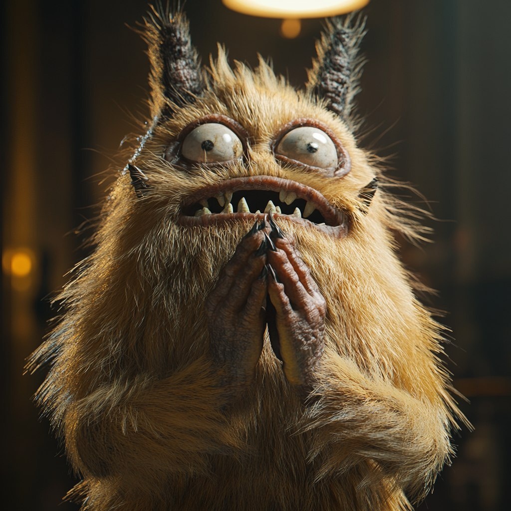 Создано на основе запроса: furry scary monster pleading with its hands like praying, cinematic, dramatic, anamorphic