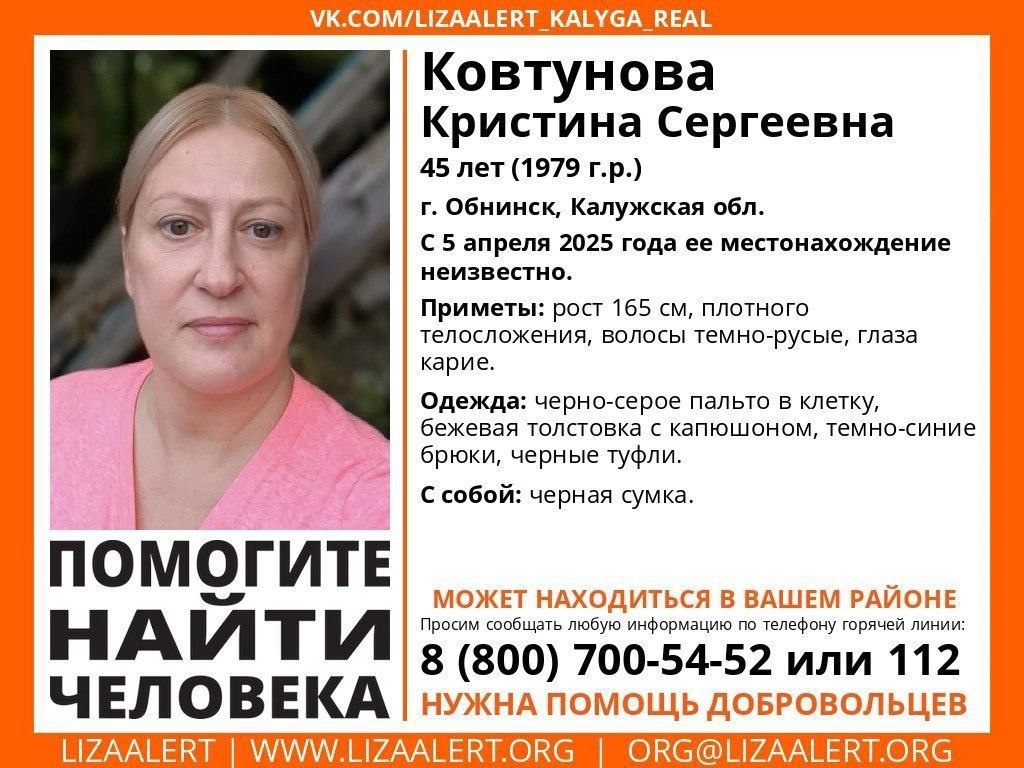 Пропала Ковтунова Кристина Сергеевна, 45 лет, г. Обнинск, Калужская обл.
