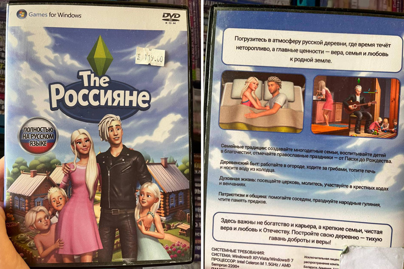 В питерском магазине (название засекречено) обнаружили коробку с необычным дополнением для The Sims 4 — «The Россияне». На обложке — персонажи, подозрительно похожие на певца Shaman и главу «Лиги безопасного интернета» Екатерину Мизулину. Цена — смешные 119 рублей, формат — DVD-диск (да, в 2024 году!). Описание игры: «Погрузитесь в атмосферу русской деревни, где время течёт неторопливо, а главные ценности — вера, семья и любовь к родной земле». Судя по аннотации, геймплей — этакая «Изба-симуляция» с национальным колоритом: Главная фишка: Персонажи-«знаменитости». Шаман, судя по всему, поёт в местном клубе, а Мизулина… следит, чтобы виртуальные симы не заходили на подозрительные сайты? Новость о «The Россияне» моментально стала вирусной. Причины: Локализация по-русски: Игры нет. Ни геймплея, ни скриншотов, ни названия магазина. Telegram-канал-первоисточник не раскрыл деталей. Вероятные сценарии: Экспертное мнение:
