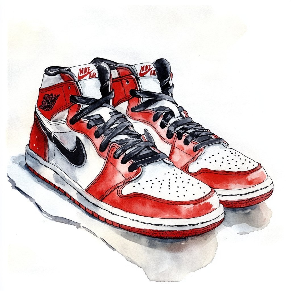 Создано на основе запроса: simplae watercolor illustration of retro jordans