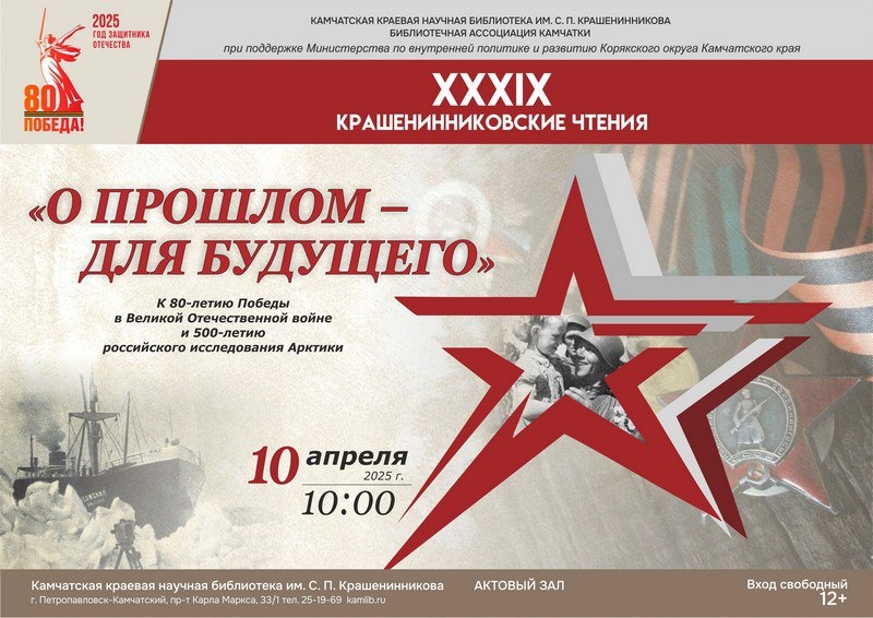 📌 Крашенинниковские чтения стартуют на Камчатке XXXIX Крашенинниковские чтения «О прошлом – для будущего» пройдут 10 апреля Камчатской краевой научной библиотеке им. С. П. Крашенинникова, передает агентство «КАМЧАТКА-ИНФОРМ» со ссылкой на сообщение библиотеки. Вход на чтения свободный. Возрастное ограничение 12+. В этом году чтения посвящены 80-й годовщине победы советского народа в Великой Отечественной войне и 500-летию российского исследования Арктики. Заслушать доклады и приобщиться к истории Камчатки смогут все желающие, независимо от их места проживания. Чтения будут транслироваться в прямом эфире на странице библиотеки в социальной сети «ВКонтакте». В Крашенинниковских чтениях традиционно примут участие ученые, сотрудники архивов, музеев, библиотек, краеведы из ... Читать на сайте: https://kamchatinfo.com/news/culture/detail/69253/
