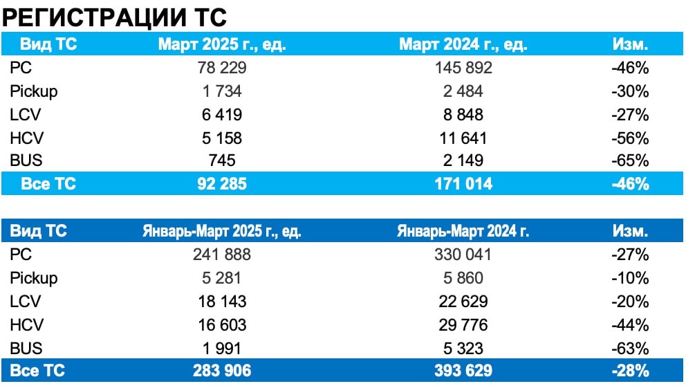 «Автостат Инфо» публикует данные о регистрациях новых транспортных средств и транспортных средств с пробегом на рынке России в марте 2025