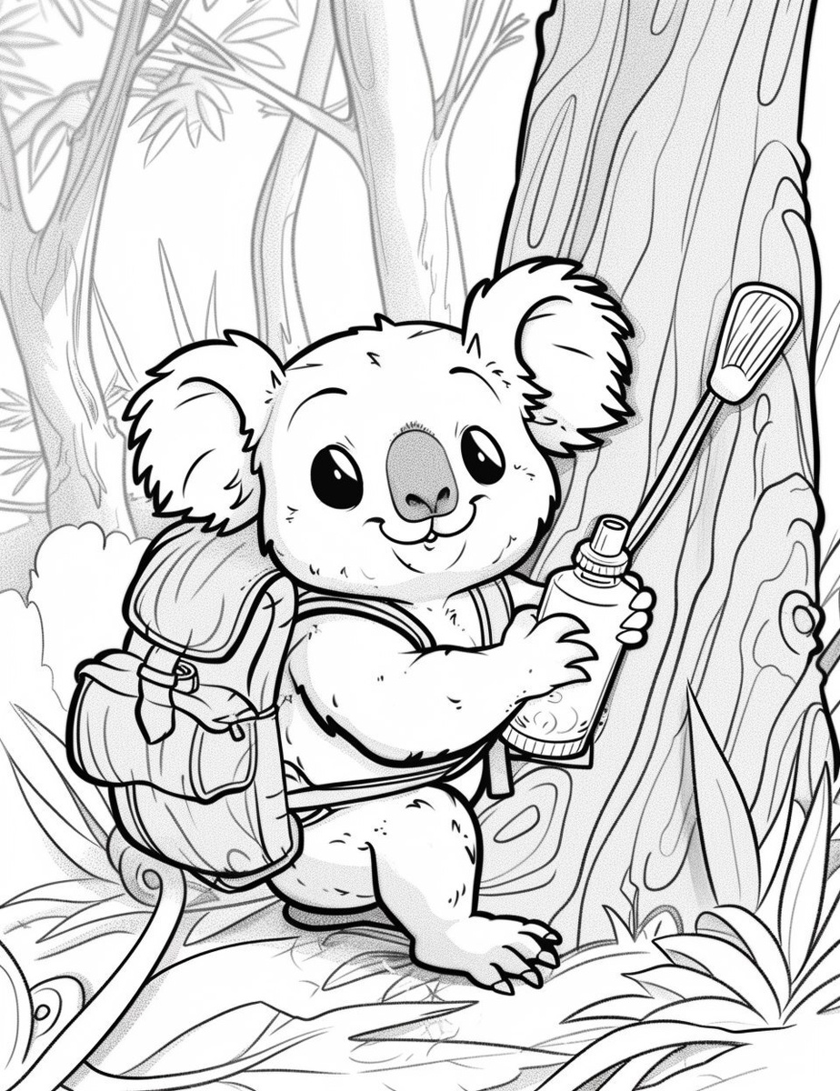 Создано на основе запроса: A simple black-and-white coloring page for toddlers (3 years old) showing a cute cartoon koala waking up in a tree. A koala putting a bottle and a snack into a backpack. Only big shapes, thick clear outlines. --- Автоперевод: Простая черно-белая раскраска для малышей (3 года), показывающая милую мультипликационную коалу, просыпалась на дереве. Классно получилось? 🤔 https://dzen.ru/id/65c0c65c86e4f837c27b24d7 #ИИ #AI #нейросеть #midjourney #art