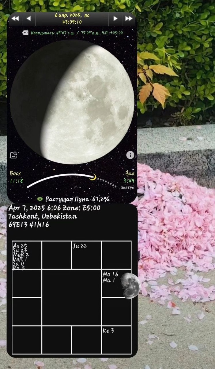 🌜07.04.2025.🌛 Ведическая Астрология Растущая Луна Раке. Ретро Венера. Сатурн заходит в Рыбы. 🌛Луна сегодня ютится в Раке, отлеживается, неспешно потягивается, натягивая одеяло на нос. В начале недели все решили спрятаться😶🌫️притаиться, взгляните только: Луна с Марсом в Раке, все остальные "товарищи" в Рыбах партизанят. И только Юпитер честно трудится в Тельце на благо будущего. 🌛Меркурий сегодня заканчивает свой попятный танец и начинает "разворачиваться" к Овну. Завтра у нас с вами Экадаши, спланируйте день под этот пост, если держите. Перед Полнолунием в Деве, и с таким скоплением в Рыбах, думаю, что он поможет здорово очистить тело на физическом и тонком плане, подготовя нас к будущему новому циклу. 🌛День больше для раскачки, раздумий и рефлексии, нежели для активных действий. Созерцание, восприятие, внимание, создание уюта и комфорта внутри и вокруг себя- сегодня максимально важно.