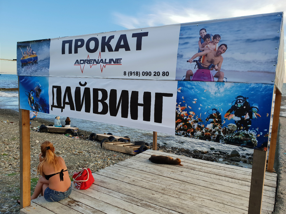 Оказалось, что ребята с «Русалочки» только рекламируют настоящих дайверов, которые находятся на пляже «Фазотрон», в 400 метрах от «Русалочки». Какие проблемы? Мы пошли на «Фазотрон», дошли до кабинки и нашли там главного.