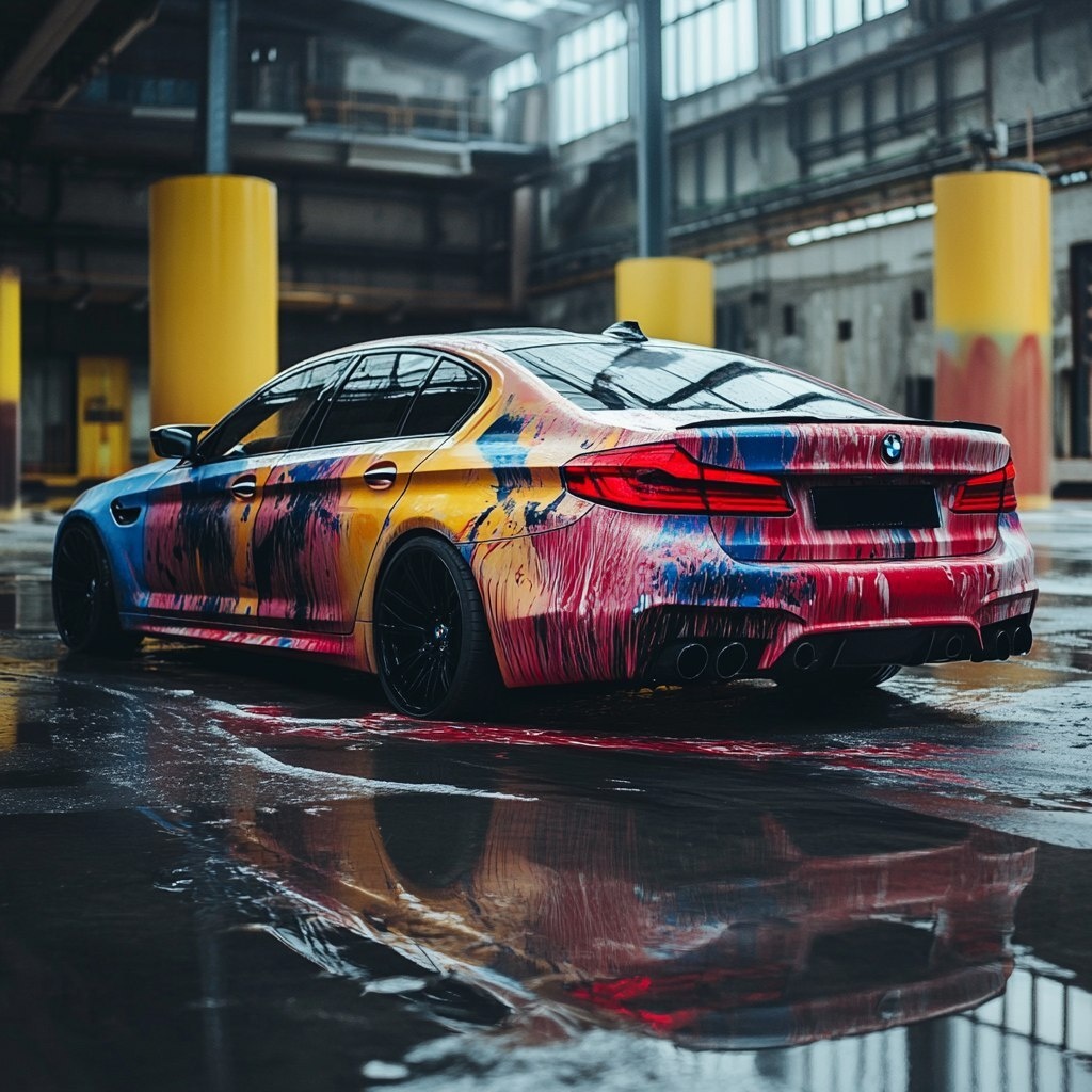 Создано на основе запроса: a bmw m5 ,a kid drowing on it
