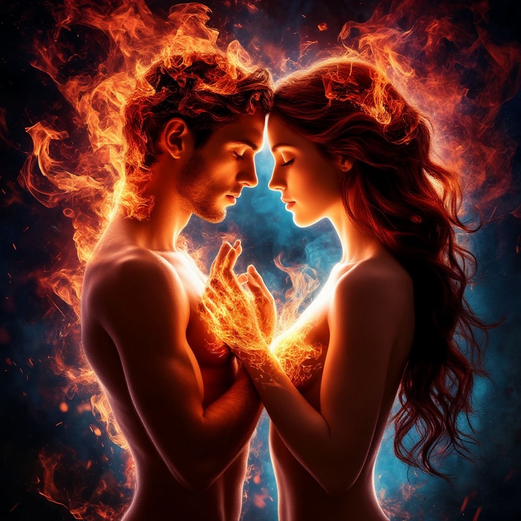 Они встретились в городе, где небо вечно отливало свинцом, а монотонный дождь давно стал досадной обыденностью. «Ты…» — прошептала Кира, и её голос рассыпался в воздухе, будто разбившийся на тысячи искр. Кейл молчал. Он знал. Они оба знали. Они бродили по улицам, их тени сплетались в единый силуэт, а боль — в две половинки одного пламени, дрожащего в темноте. Но чем сильнее они тянулись друг к другу, тем яростнее мир сопротивлялся. Их связь рождала катастрофы: от поцелуев случались землятресения, от прикосновений — стиралась память целых народов. Люди отворачивались, шептали проклятия. Их близость была неудобной, а любовь была чужой в этом мире. «Чувствуешь?» — Кейл прижал её ладонь к груди, где вместо сердца пылало пламя. Оранжевые языки лизали пальцы Киры, но не обжигали. «Это всё, что от меня осталось». «И от меня», — она резко разорвала ворот платья, обнажив шею с пульсирующей веной-спиралью, закрученной в бесконечный узел. Они бежали. Но города на пути встречались ли