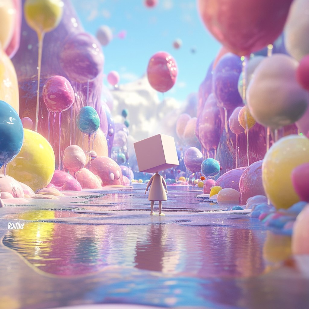 Создано на основе запроса: A 3D Pixar-style scene inspired by Inside Out. The main character is a personified emotion or concept for example, a cube-shaped creature representing "Routine" or a colorful blob-like being that lives in a familiar memory zone. The character stands at the edge of a safe, known area, gazing toward a vibrant, surreal landscape made of floating memory orbs, jumping thought bridges, and mysterious glowing empty zones yet to be discovered. The character takes a nervous but curious step forward. The overall aesthetic is playful, abstract, and emotionally symbolic, with soft textures, vivid colors, and a cinematic feel. Do not display any text. --- Автоперевод: 3D-сцена в стиле Pixar, вдохновленная Inside Out. Что скажешь? 🤔 https://dzen.ru/id/65c0c65c86e4f837c27b24d7 #ИИ #AI #нейросеть #midjourney #art