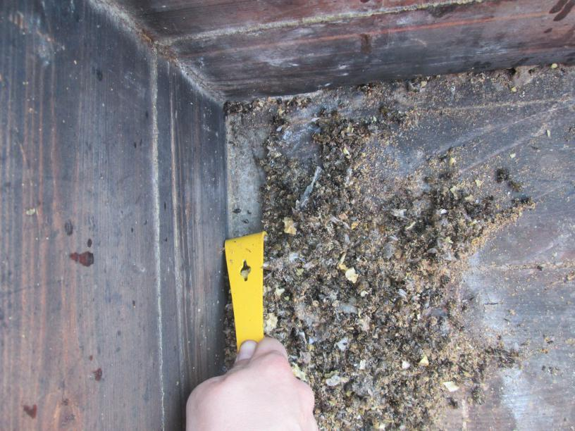 ✅ Удалите крупные загрязнения – стамеской или шпателем соскребите прополис и воск.